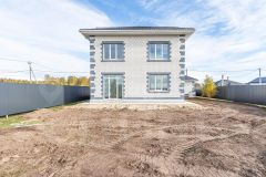 Фундамент- цельная монолитная плита. Стены- керамзитобетонный блок 300, утепление - минеральная плита, облицовка - силикатный кирпич. Перекрытие между этажами - ж/б плиты.