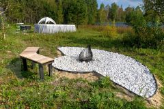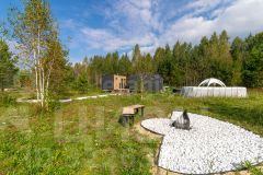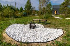 УЧАСТОК. На территории участка организована зона барбекю, место для посиделок у костра, выложенное декоративным белым камнем. Площадь участка позволяет грамонтно зонировать пространство.