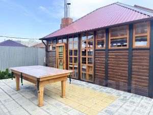 — двухэтажная баня, построенная по всем канонам из натурального дерева, площадью 86 кв.м, с комнатой отдыха и собственным кинотеатром