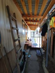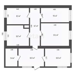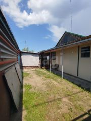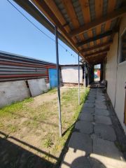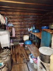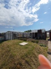 Дом построен из бетонных плит, что обеспечивает прочность и долговечность конструкции. Внутри — три комнаты, кухня, коридор и кладовая, а также закрытая веранда. Водоснабжение автономное, вода подается из скважины, расположенной в подполе. Санузел оборудован унитазом с септиком. Отопление комбинированное: печь и электрокотел, что позволяет регулировать температуру в зависимости от сезона. Окна современные, деревянные, обеспечивающие хорошую теплоизоляцию. Часть мебели и кухонный гарнитур остаются в доме, включая двуспальную кровать с новым матрасом.