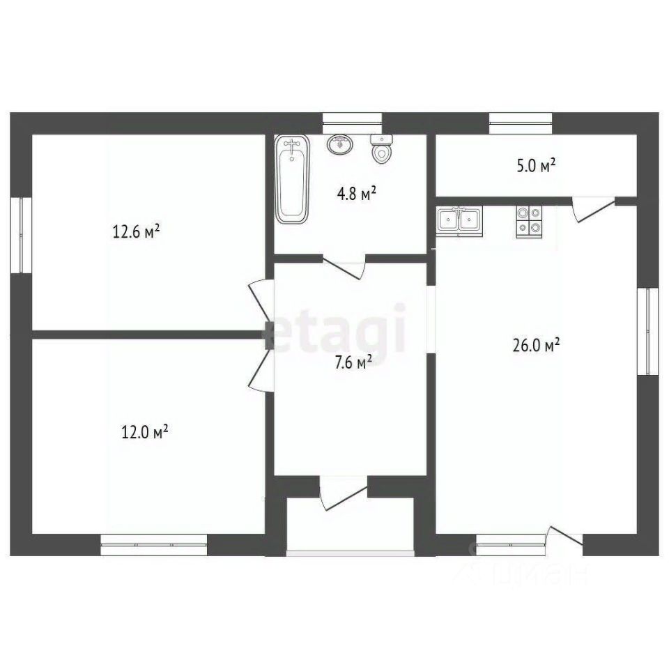 Планировка - две спальни, просторная кухня-гостиная, совмещенный санузел, котельная и прихожая.