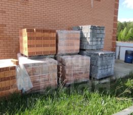 Также на участке начато строительство двухэтажного коттеджа общей площадью 160 м.кв. из керамзитоблока с утеплителем и облицовкой из красного кирпича на буро-наливном фундаменте со связующей арматурой 16 диаметра (хоть 9 этажей ставь). Строили качественно для родителей, но в силу определенных обстоятельств вынуждены продать. Бонусом при покупке идет практически весь стройматериал для доведения до ума коттеджа (на фото), кроме кровли.