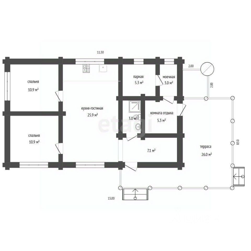 В продаже Дом-баня, располагается в деревне Якуши, в экологически чистом районе. S участка 10 соток, S дома 70,6м2. В непосредственной близости лес, река. Построен из оцилиндрованного бревна 22 см., на участке 10 соток, категория земель ИЖС, дом отшлифован и покрыт лесирующим лаком, крыша покрыта металлочерепицей, в доме заведены все коммуникации, скважина 40 метров с греющим кабелем, имеется переливной септик, два колодца, электричество 15 кВт, 3 фазы, оформлена заявка на догазификацию, установлен водонагреватель 50 л, электрический котёл отопления с дистанционным термореле, управляемый с приложения. Дом построен в 2024 году, на ленточном фундаменте, установлен 3-й стеклопакет с витражными окнами. В доме имеется вся инженерная разводка, присвоен адрес, заведён интернет, все инженерные коммуникации проведены в земле.