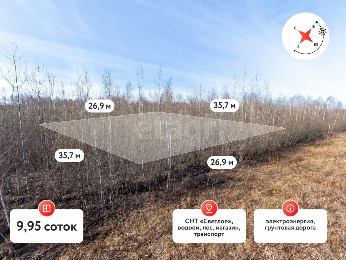 Уважаемые покупатели! Предлагаю вашему вниманию, участок 10 соток, в СНТ "Светлое" (р-н д.Решетникова) в 5 километрах от Салаирского тракта . Общество газифицировано, идет активная застройка. Участок не разработан, насаждений нет, не огорожен - чистый. Электричество проведено до участка. Транспортная доступность круглый год, ходит рейсовый автобус 155, удобно добираться на личном автомобиле- асфальт до самого общества. Рядом д. Решетникова База отдыха Верхний Бор, горячий источник Советский. Так же рядом строится КП Береза-парк. Санаторно-курортная зона, ведь здесь исключительная экология сказывается отсутствие производственных предприятий. На Салаирском тракте много хвойных деревьев .Вокруг тракта множество водоемов В лесном массиве вдоль автодороги есть места, специально оборудованные для отдыха, благоустроенные беседки. Есть прописка (Центральный АО г. Тюмени). Межевание проведено. Звоните.