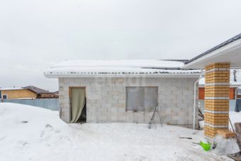 Конструктив: дом построен на монолитной плите 300 мм ( армирование в два слоя) стены из керамзитоблока плюс утепление 100мм и облицовочный кирпич. Кровля утеплена в 200 мм сделана из металлочерепицы цвета графит. Установлены водостоки, снегозадержатели. Тройной стеклопакет окон сохранит тепло в доме. Входная дверь с терморазрывом 12см.