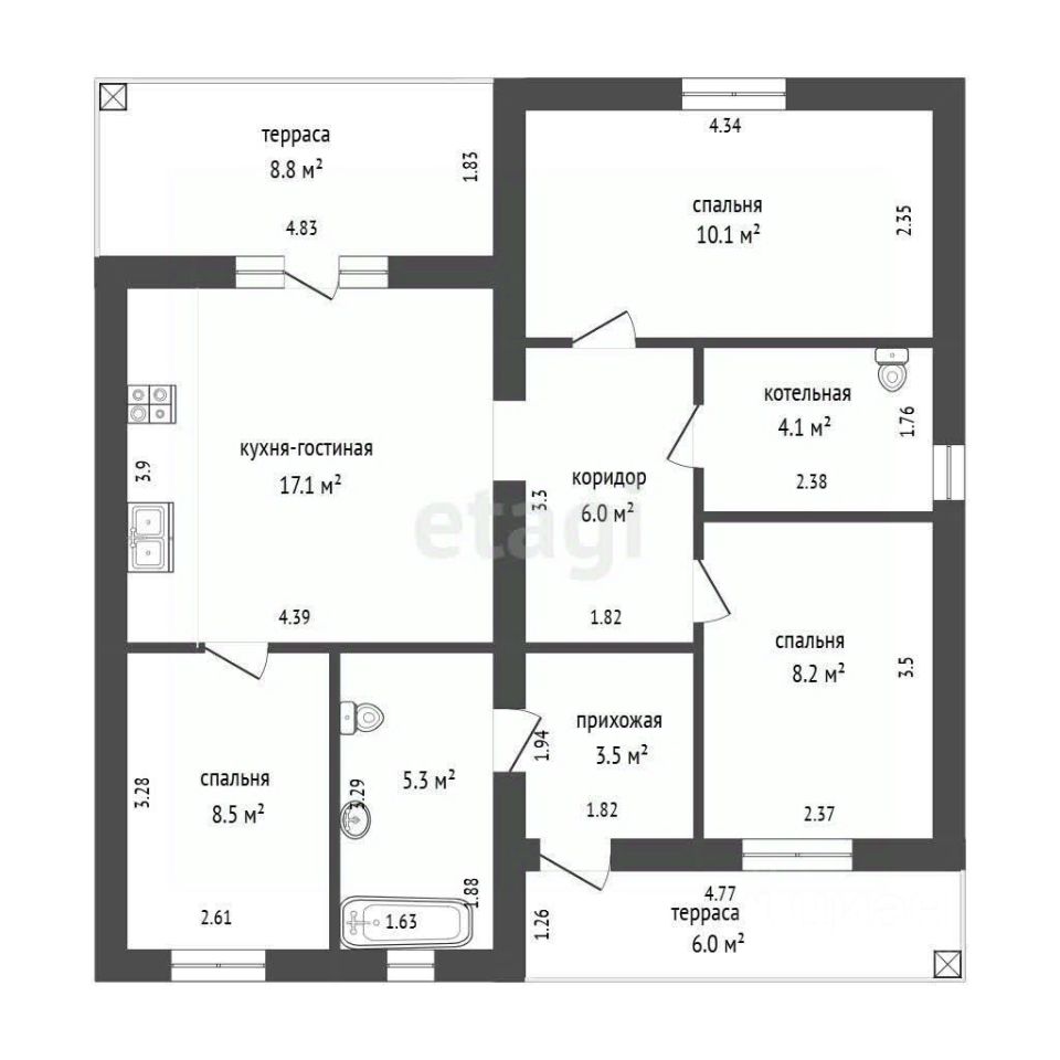 (кухня-гостиная, 3 спальни и 2 сан.узла)