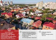 Дом располагается на земельном участке площадью 8,64 сотки по документам и 10 по факту. Участок ухожен, на нем растут многолетние плодовые деревья. Все дорожки выложены брусчаткой. На участке также есть дом-баня с отличной парилкой, мойкой, комнатой отдыха и санузлом на первом этаже, а также просторная комната на втором этаже. Рядом с баней построена большая остекленная беседка с настоящей русской печкой из кирпича.