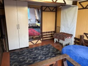 На участке 2-этажный дом из бруса, облицовка- сайдинг, общей площадью 60 м2, пластиковые окна, санузел в доме и на участке, печное отопление. На 1 этаже: прихожая и 2 помещения, на 2 этаже: 2 комнаты и балкон. Имеется форточный кондиционер.