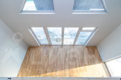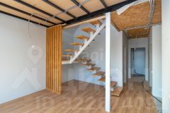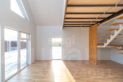 Дом обладает продуманной планировкой, которая включает на первом этаже просторную кухню-гостиную, уютную спальню, современный санузел и техническое помещение. На втором этаже расположены еще одна спальня и кабинет, что позволяет удобно организовать пространство для работы и отдыха.