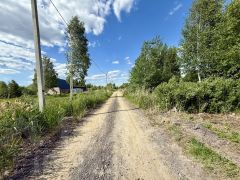 Участок правильной, квадратной формы, сухой, столб для подключения электричество рядом с участком. Подъездная дорога отсыпана щебнем.