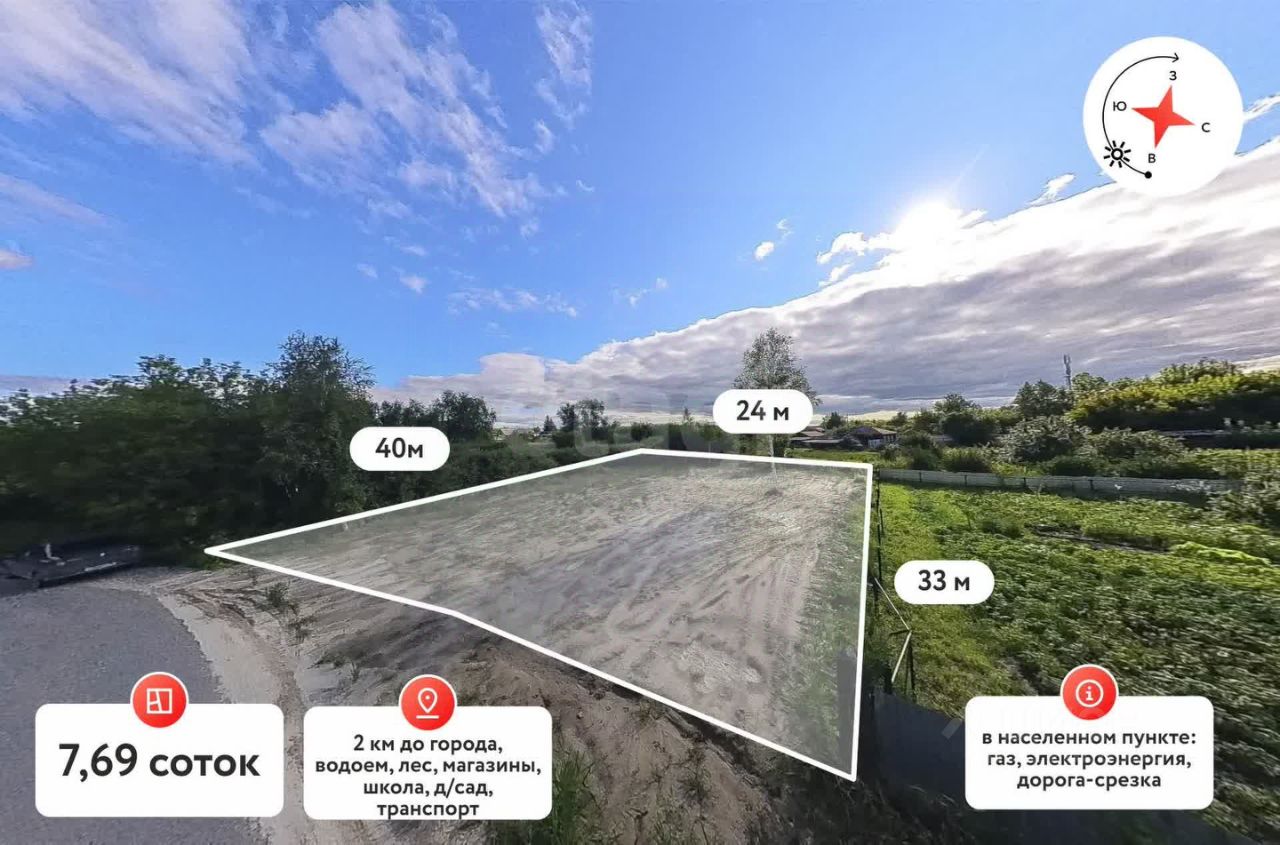Площадь участка составляет 7,69 соток, имеет правильную прямоугольную форму, отсыпан и готов к застройке, с удобным асфальтированным подъездом.