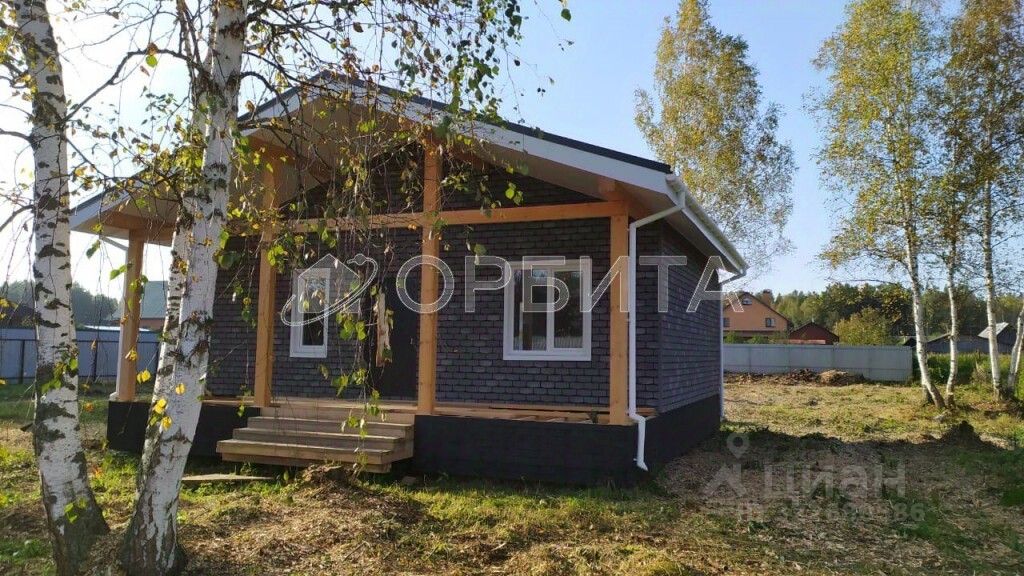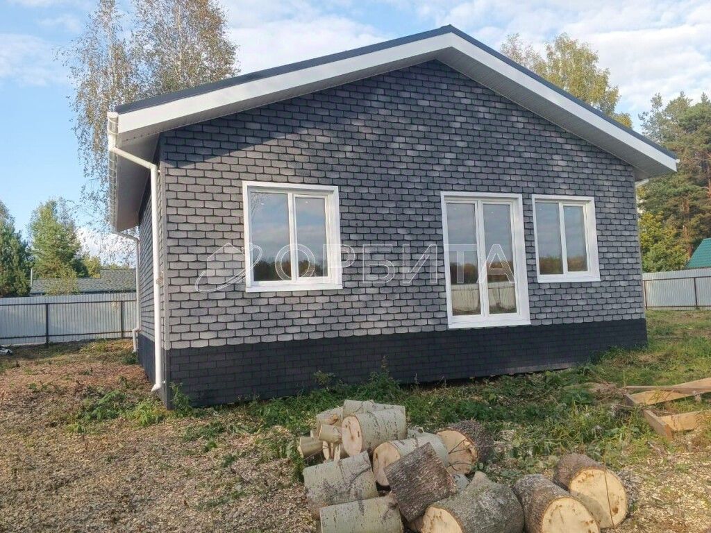 На участке — готовый каркасный дом 72 кв.м с просторной кухней-гостиной, двумя спальнями и террасой для отдыха или барбекю.