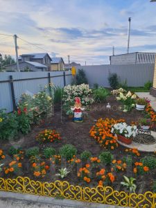 - Огород с разнообразными насаждениями: яблони, вишня, груша, слива, малина (2 сорта), крыжовник, клубника, белая и чёрная смородина