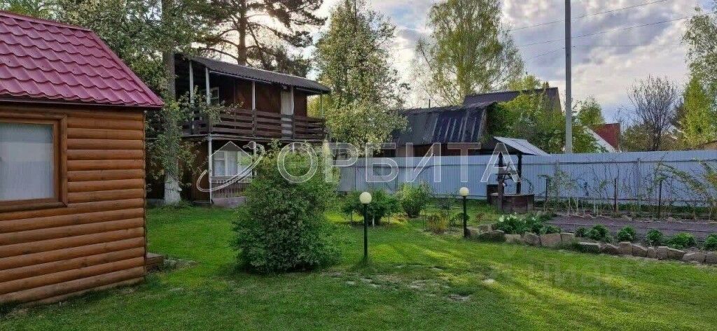 Ухоженный участок — газон, огород, плодовые деревья и ягоды (клубника, малина).
