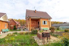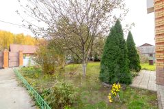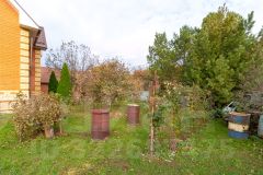 Жаркая баня с комнатой отдыха, два гаража, две теплицы, хозпостройка для куриц и хранения инвентаря. Многолетние деревья, ягоды, цветы.