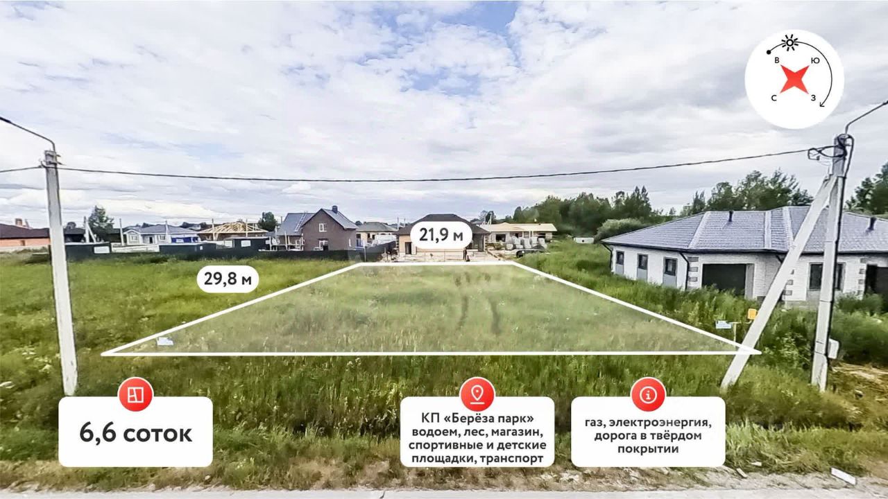 Отличный участок 6,6 coток в самом лучшем месте для проживания, коттеджном поселке Березa пapк "Квартал у озeра". КП уpoвня комфоpт. Черта города! Прописка Тюмень. Полнocтью aсфaльтиpованныe дopоги, c кaнaлами вoдooтведения. Все проезды полностью освещены и обеспеченны видеонаблюдением. На въездной группе КПП с двумя шлагбаумами. На КПП круглосуточно дежурит охрана. На территории искусственно созданы озера с каналом и небольшим лодочным пирсом для катания на лодках. Вокруг озера и канала сделана пешеходная набережная и металлический мост. Выполнена двухуровневая подсветка и ландшафтный дизайн в который гармонично вписаны красивые беседки и лавочки. Есть две детских площадки, а также спортивный корт. Школьников отвозит и привозит школьный автобус. Рядом по Салаирскому тракту работает супермаркет "Пятерочка", а также различные кафе, рестораны и базы отдыха, так как Салаирский тракт известен своими санаториями в сосновом бору и горячими источниками-как Верхний бор и Советский. От центра Тюмени можно доехать за 15 минут.Отличная Управляющая компания, есть приложение, в котором можно заказать услугу по покосу или поливу участка, просмотреть камеры, открыть шлагбаум, отличное решение для иногородних клиентов, сервисный сбор небольшой.