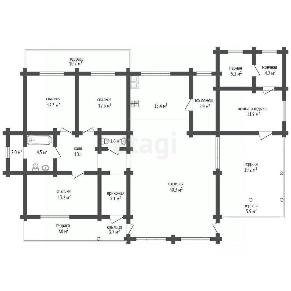 Дом площадью 144 кв.м построен из натурального дерева — экологически чистого материала, который наполняет пространство удивительным ароматом.