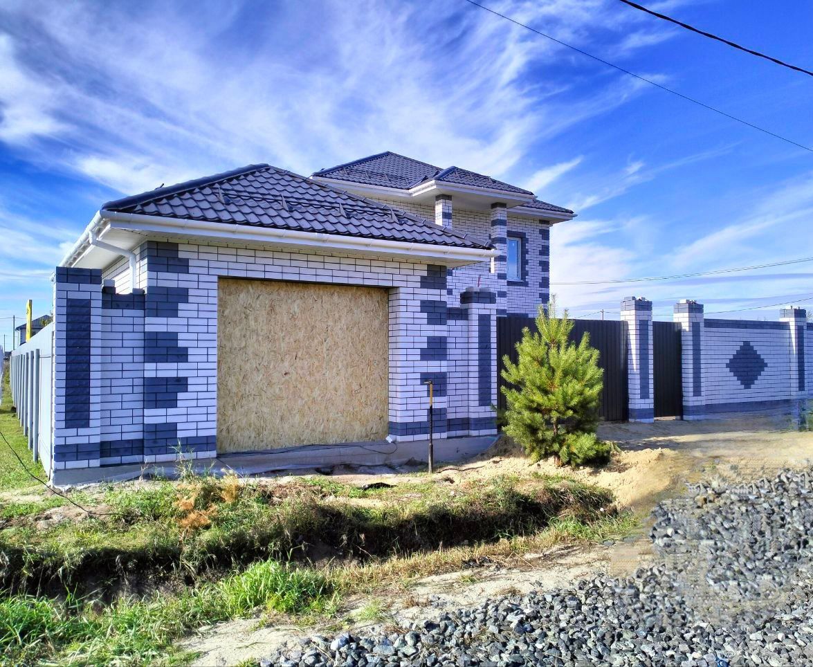 Крыша - металлочерепица цвета Графит. Стены оштукатурены и зашпаклеваны (белые).