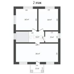 - Второй этаж: просторная гостиная (28,1 м²), две комфортные спальни