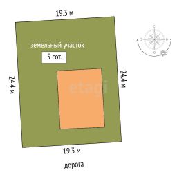 Высокое место. Участок 5 соток ИЖС, размеры участка 20 х 25 м. Дом размерами по внешнему контуру 11.5 х 9 м. И при этом остается место под гараж, баню, мангальную зону, зону огорода и садовых насаждений. Все градостроительные нормы выдержаны.