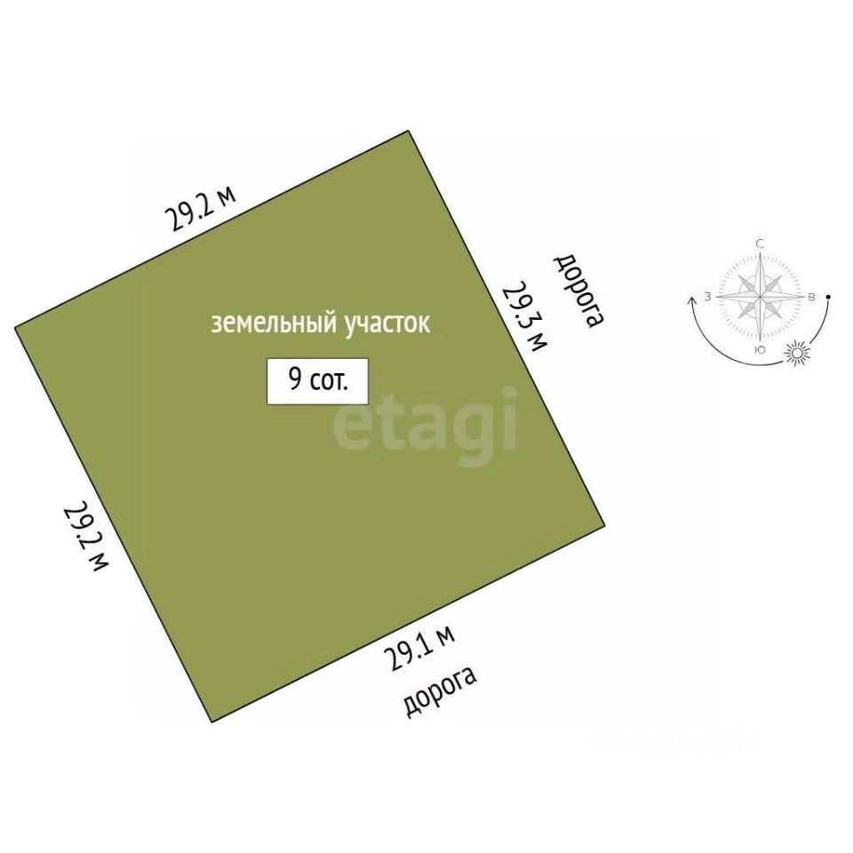 Продается земельный участок 9 соток, в черте города. На участке нет капитальных строений, с трёх сторон участок огорожен забором из профлиста. Расположение участка очень удачное - участок угловой, правильной квадратной формы.