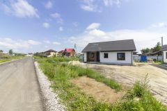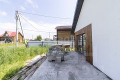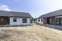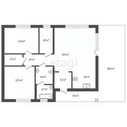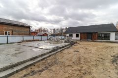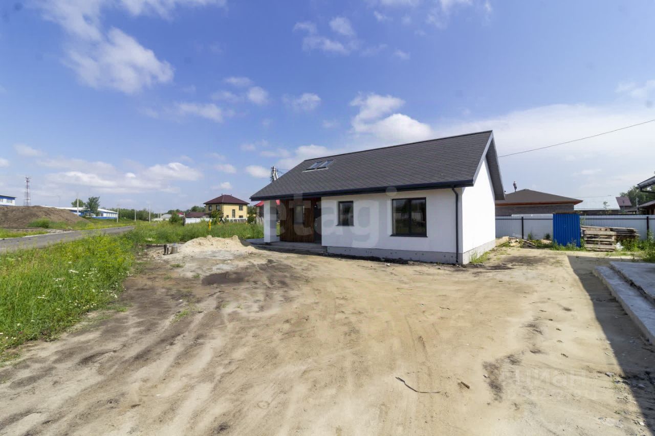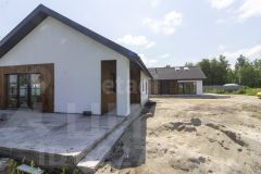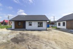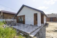 Современный одноэтажный коттедж, общая площадь дома составляет 74 кв. метра, 2 спальни и кухня гостиная с террасой, земельный участок — 4 сотки, что обеспечивает достаточно пространства для отдыха и досуга.