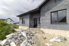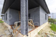 Дом состоящий из 3 комнат, выполнен из керамзитных блоков, облицован селикатным кирпичом, стены утеплены пенополистиролом. Крыша покрыта металлочерепицей и утеплена 20см слоем мин.ваты.