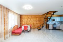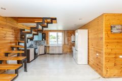 На первом этаже расположена большая кухня-гостинная, где можно проводить время с семьей и друзьями, также личный кабинет, санузел, техническое помещение. Второй этаж включает две светлые спальни, обеспечивающие уединение и отдых. На второй этаж ведет удобная деревянная лестница.