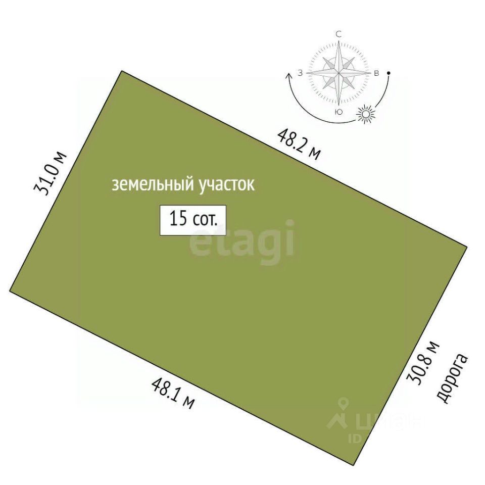 Участок правильной формы -15 соток. Возле участка выведен газовый стояк, также установлен электрический столб. Широкие дороги с твердым покрытием.