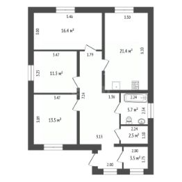Основание дома - монолитная ж/б плита с утеплением. Несущие стены из газобетонного блока толщиной 300 мм. Данный материал является самым теплым из представленных на рынке блоков. Дополнительное утепление стен 50 мм. и фасад из керамического пустотелого кирпича делает дом очень теплым, позволяя значительно сократить расходы на отопление.
