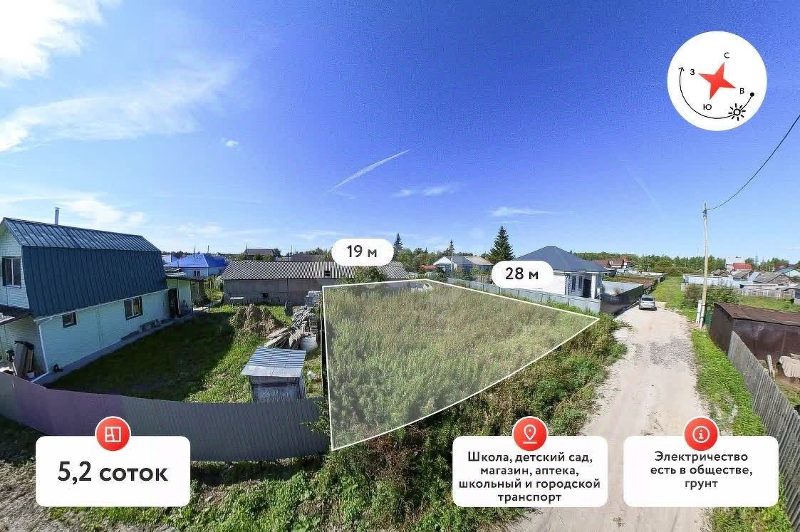 Участок площадью 5,2 сотки расположен в развитом районе с круглогодичным подъездом, что гарантирует комфортное использование вне зависимости от сезона.