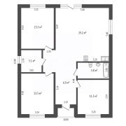 Дом состоит из трёх спален, кухни-гостиной, совмещённого санузла, котельной и большой кладовки/гардеробной. Общая площадь дома 90 кв.м. Участок 6.4 сотки.