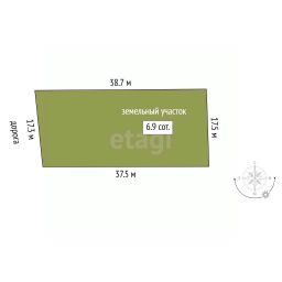 Площадь участка составляет 6,9 сотки, что даёт возможность организовать зону отдыха под открытым небом или разбить небольшой сад или огород.