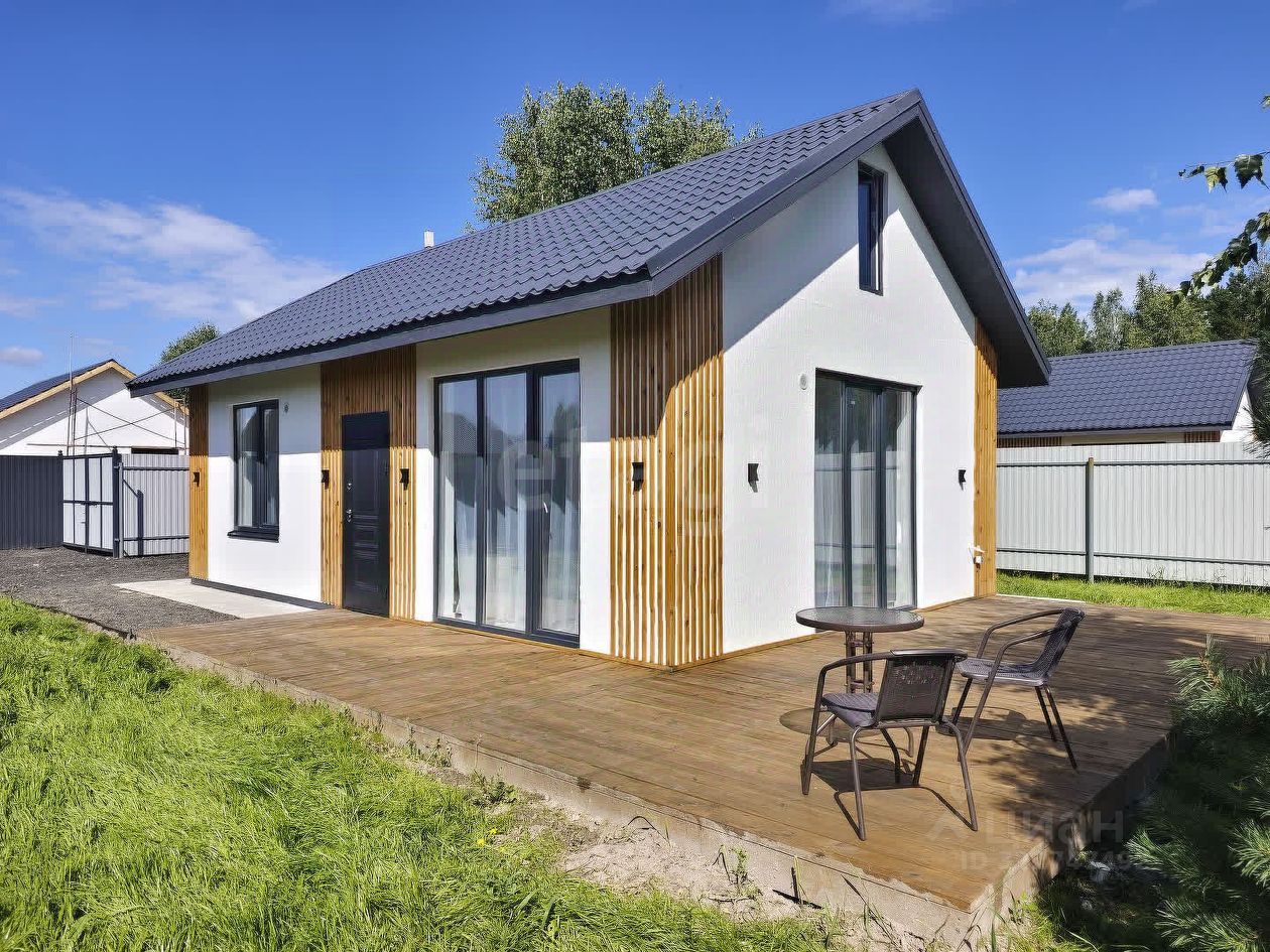 Кровля: металлочерепица, потолок утепление 150 мм. Окна: тройной стеклопакет. Входная дверь с терморазрывом. Участок: забор с воротами и калиткой, газон, парковочное место из щебня.