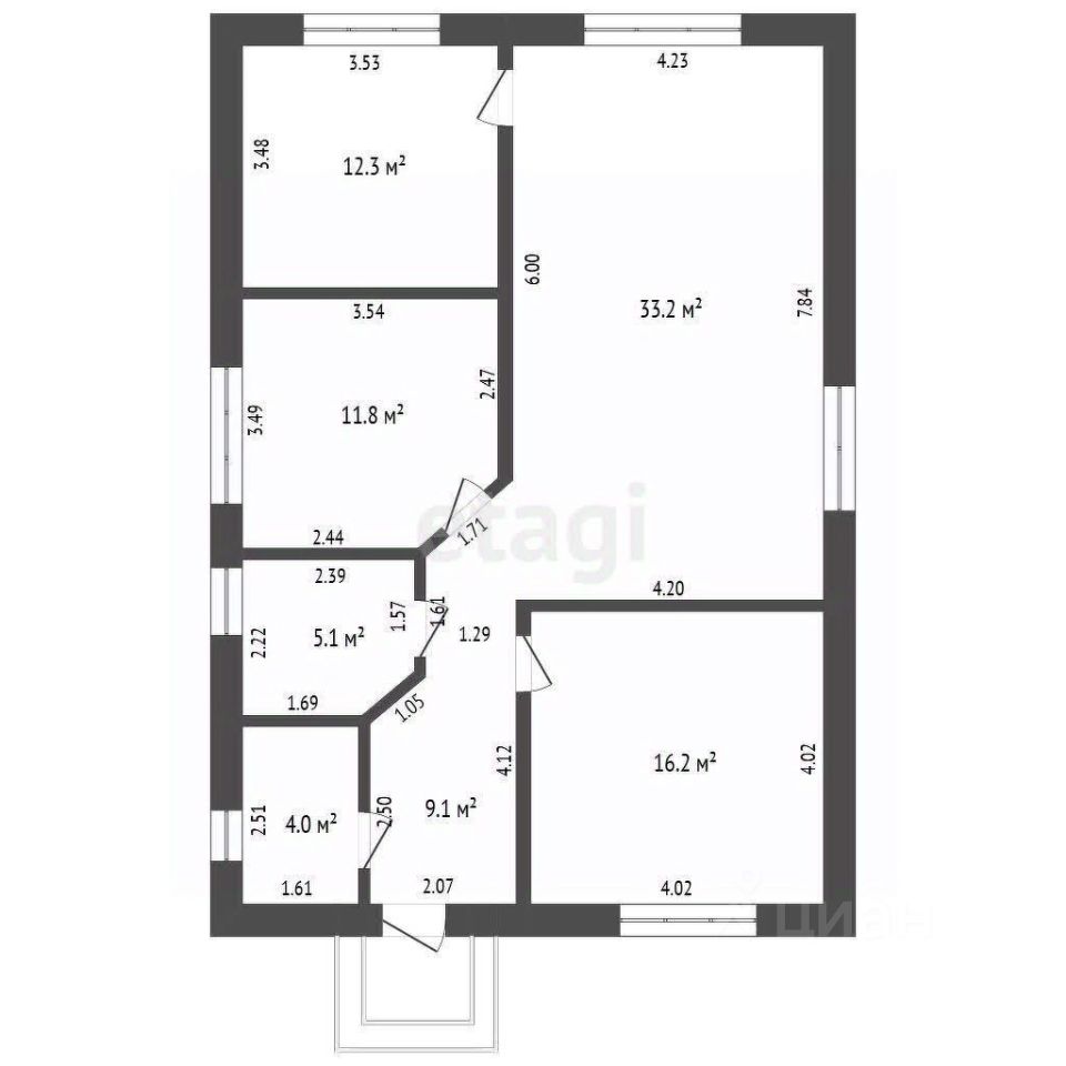 3 cпальни: 11,8 + 12,3 + 16,2 кв.м.