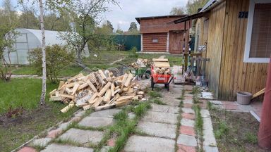 Летний дом с печкой, кухня и две комнаты, баня в хорошем состоянии. Участок огорожен забором, недалеко от въезда, рядом остановка.