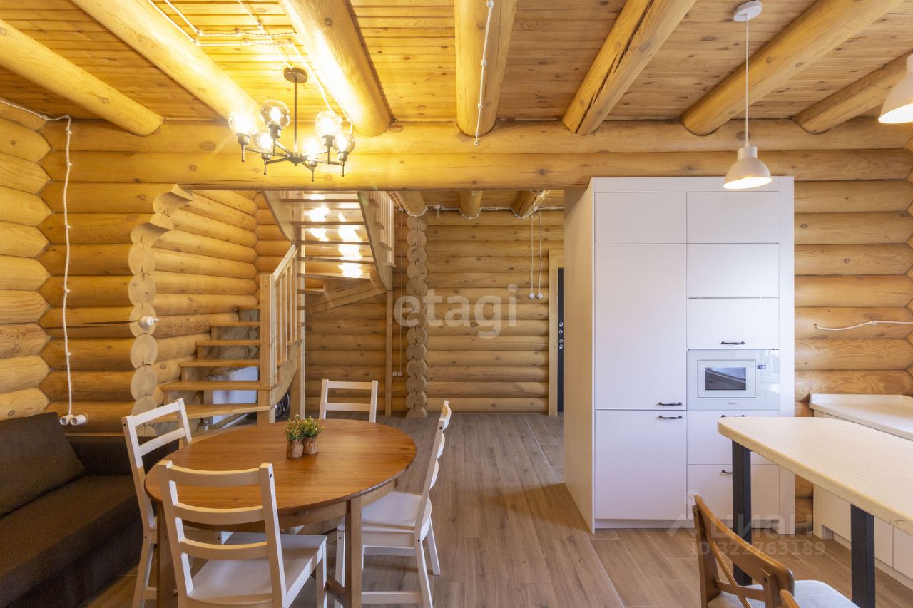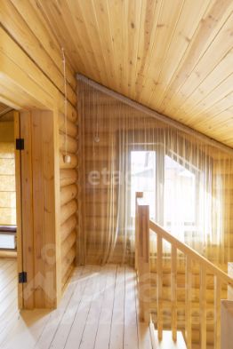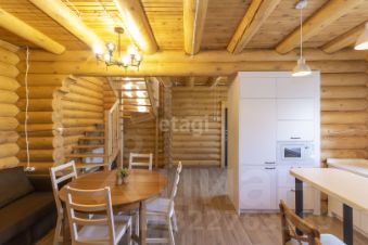 Стены дома выполнены из оцилиндрованного бревна диаметром 26 см. Кровля металлочерепица. Окна деревянные со стеклопакетами. Входные термо-двери, пол первого этажа утеплен. В дом заведены газ, вода и электричество.