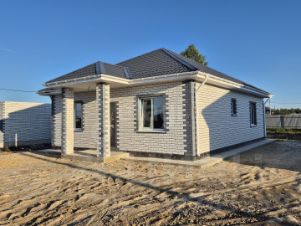В основании дома монолитная плита, стены из керамзитоблока с армированным поясом, фасад из кирпича, кровля - металлочерепица, установлены теплые окна и входная дверь с термо разрывом.