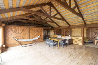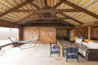 - Отдых на свежем воздухе: Просторная веранда с зоной для барбекю станет идеальным местом для летних встреч с друзьями и семьей. Участок огорожен профнастилом и окружен зеленью — здесь растут яблони, малина и черника.