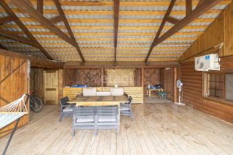 - Просторная планировка: В доме вас ждет одна большая комната, объединяющая кухню и гостиную, а также отдельный санузел, баня и терраса с кладовым помещением — все под одной крышей!