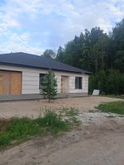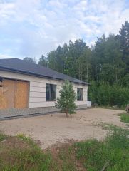 Дом стоит на свайном фундаменте (45 шт), выполнен из поревита, утеплитель, штукатурка кароед. Скважина, септик, отопление газовое. Отделка предчистовая, теплый пол.