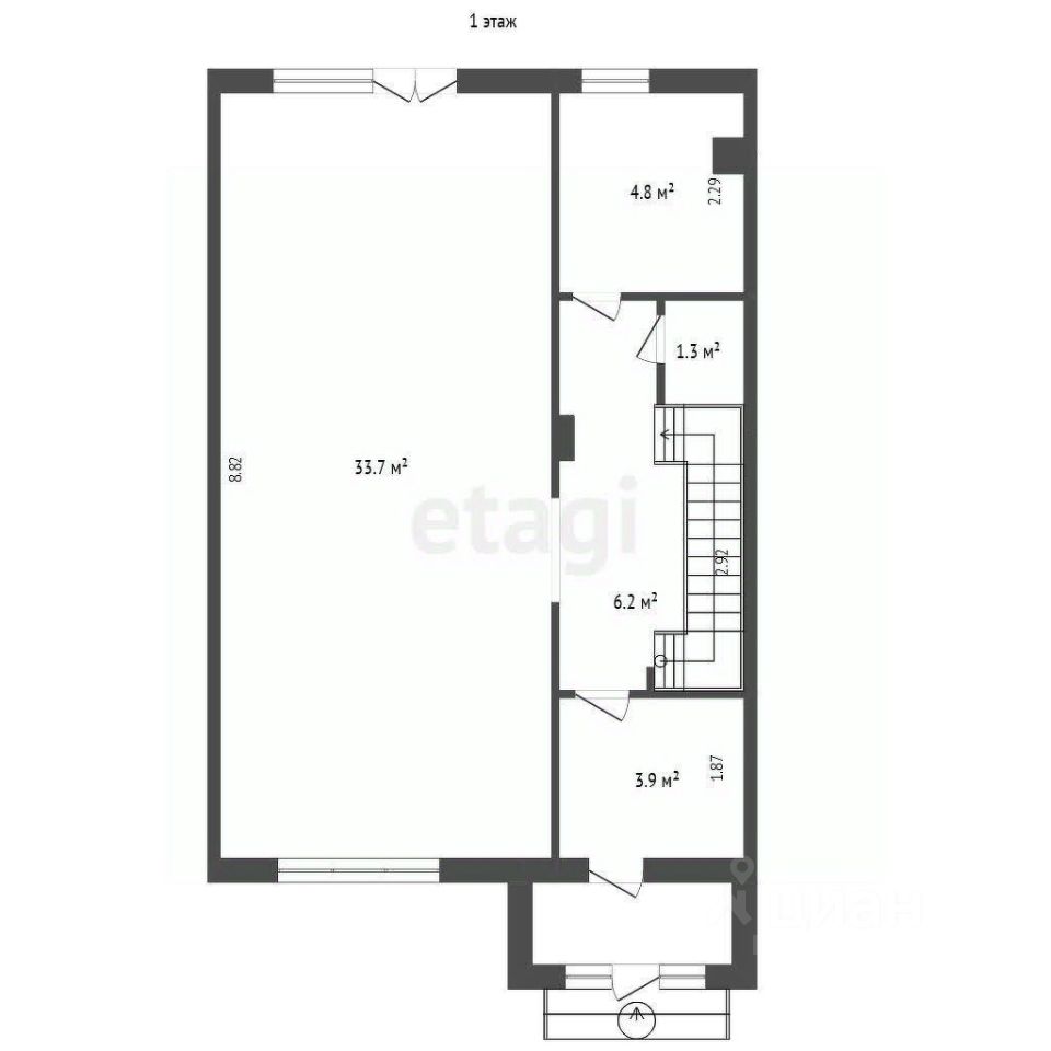 - 1 этаж - большая кухня-гостиная - 33,7 кв.м, витражное остекление, выход на участок, гостевой санузел, котельная, через которую можно выйти на участок.