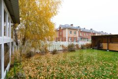 таунхаусу зона земельного участка благоустроена. Высажен газон . Можно оборудовать зону отдыха и барбекю .