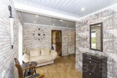 Продается загородный дом с комплексом хозяйственных построек на ухоженной территории. Участок включает два гаража — для легкового автомобиля и для спецтехники, а также баню и летнюю кухню. Земельный участок отличается плодородным садом с яблонями, грушами, виноградом, малиной, клубникой и ежевикой, что обеспечивает не только эстетическое удовольствие, но и практическую пользу. Основное здание обладает рациональной двухуровневой планировкой: первый этаж функционально разделен на две независимые жилые зоны площадью 60 и 76 кв. м, каждая со своим входом. Это решение идеально подходит для многопоколенной семьи, предоставляя возможность раздельного проживания с сохранением приватности. На втором этаже 90м2 расположена просторная гостиная зона площадью 50 кв. м с выходом на террасу, спальня, кабинет и санузел. На первом этаже основного блока находятся кухня-столовая, две спальни, санузел , постирочная комната. и болерная ,где расположен газовый котел с фильтрами для воды. Объект продается в отличном состоянии со всей встроенной мебелью, что позволяет новым владельцам заехать без дополнительных затрат и хлопот. Высокая транспортная доступность и развитая местная инфраструктура дополняют преимущества этого предложения для постоянного проживания.