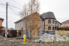 В дом заведено электричество, есть скважина. Газ около участка. Перед участком большая прилегающая территория. Через дорогу идет маломощная ВЛ 10 кВ и лесополоса, что делает невозможным построить вблизи дома высотные здания.