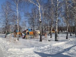 Рядом с воротами - ухоженный березовый лесок с детской площадкой.