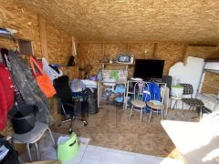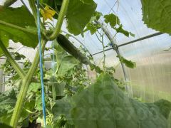 На территории есть летний домик, две теплицы из поликарбоната длиной 4 и 6 метров. Построен сарай для хранения инвентаря, летний душ и туалет.