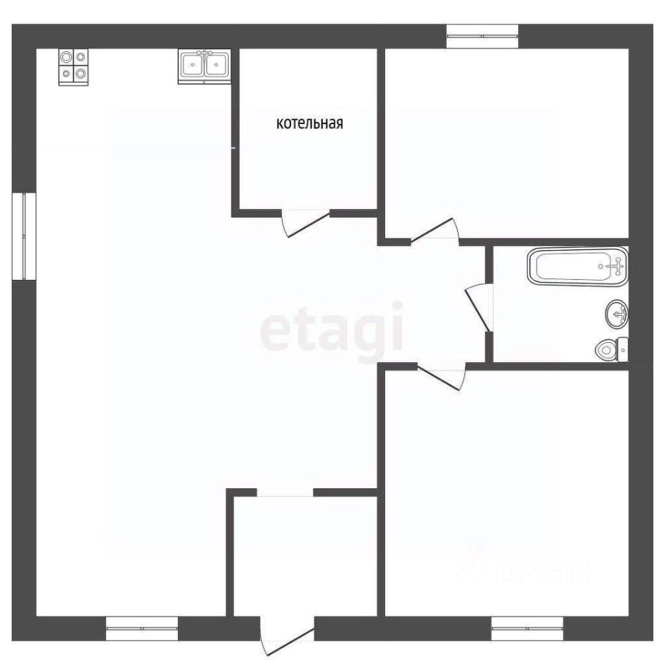 Дом 80 кв.м, функциональная планировка дома: две изолированные комнаты и просторная, светлая кухня-гостиная, совмещенный санузел, котельная.