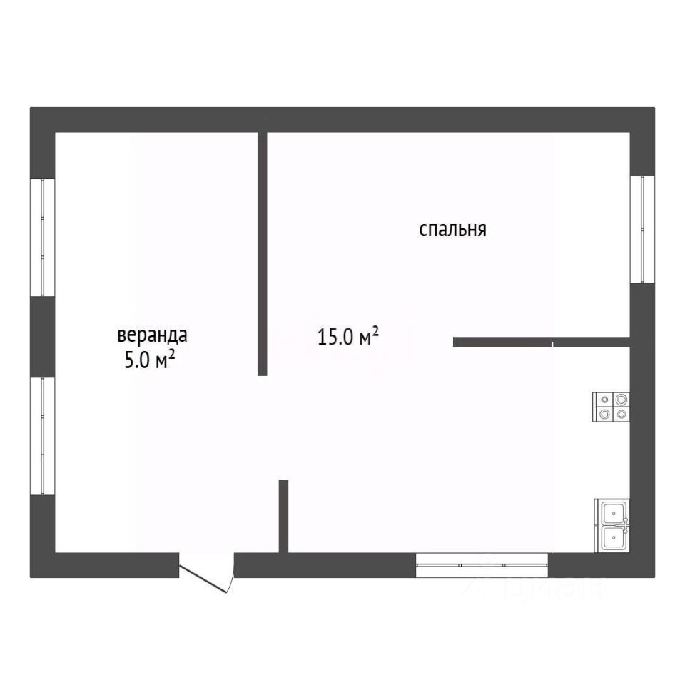 Внутри домика выполнен косметический ремонт, а свежий линолеум создает уютную атмосферу. Планировка включает в себя просторную веранду и кухню-столовую, где также размещена спальная зона.