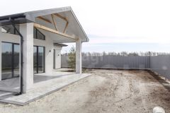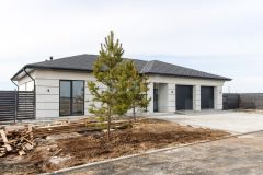 Дом выполнен в спокойных, элегантных тонах с использованием **премиальных материалов**. Просторные помещения наполнены светом, а панорамные окна в пол создают ощущение простора и единения с природой.